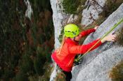 - Je totiž již nutné zvládat lezení na skále v minimální požadované obtížnosti 5+. Dále, umět si správně obléknout sedát, navázat se na lano, cvakat fixní body, slaňovat pomocí prusíku a ovládat zakladní pohyb ve štandu.